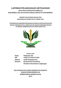 Penyimpanan Dokumen Kepegawaian Dengan Sistem Digitalisasi Dengan Pemanfaatan G-Drive dan Pelayanan Dasboard Kesling di Subbag Administrasi dan Umum Tahun 2021